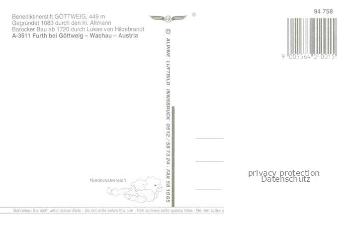74100543 Furth Goettweig Niederoesterreich AT Panorama mit Benediktinerstift postalisch nicht gelaufen Erhaltung siehe scans [FriedD77] KatCode: 11390124031309