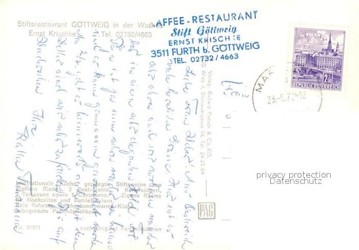 73264998 alte Postkarte Furth Goettweig Stift Goettweig Stiftsrestaurant Gastraeume postalisch gelaufen Erhaltung siehe scans [WerneD78] KatCode: 11390124031309