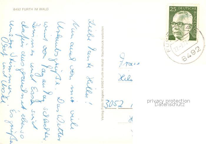 73019488 alte Postkarte Furth Wald postalisch gelaufen Erhaltung siehe scans [NatalD47] KatCode: 11110009372126