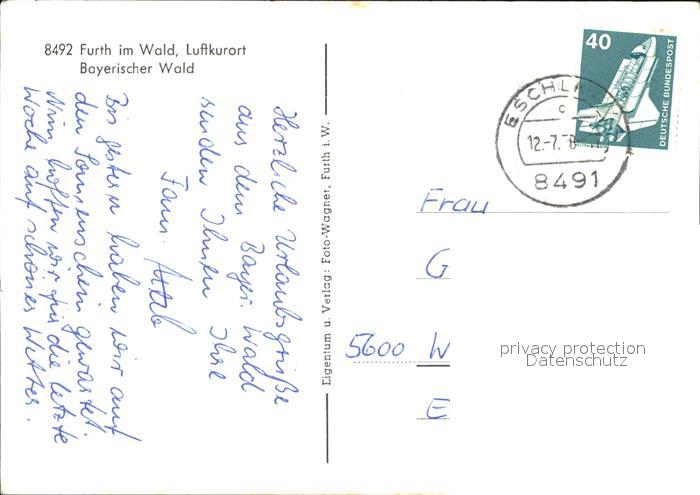 72581822 alte Postkarte Furth Wald postalisch gelaufen Erhaltung siehe scans [LiesaD40] KatCode: 11110009372126