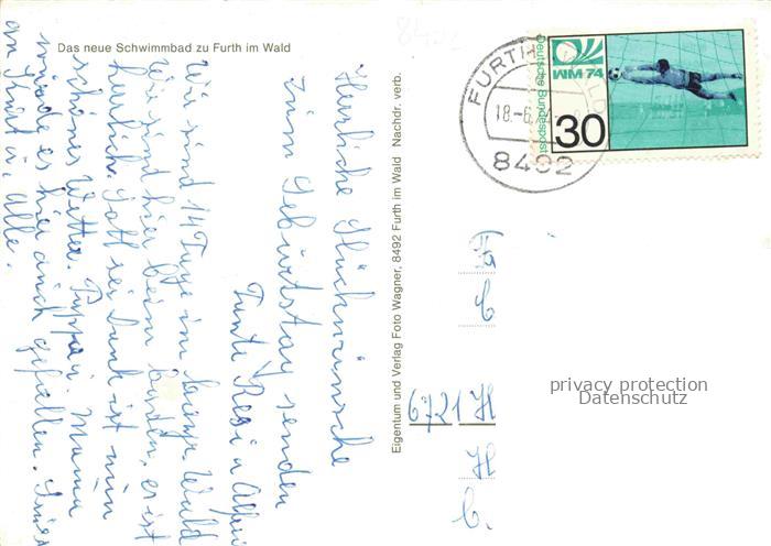 74049758 alte Postkarte Furth Wald Fuerth Wald Neues Schwimmbad Freibad postalisch gelaufen Erhaltung siehe scans [FriedD77] KatCode: 11110009372126