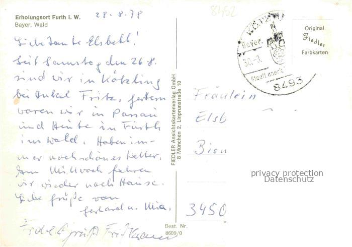 74049741 alte Postkarte Furth Wald Fuerth Wald Panorama Erholungsort im Bayerischen Wald postalisch gelaufen Erhaltung siehe scans [FriedD77] KatCode: 11110009372126