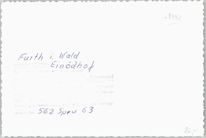 40031388 Furth Wald Gaststätte Einödhof * KatCode 11110009372126