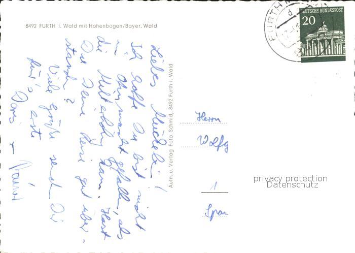72225587 alte Postkarte Furth Wald Hohenbogen postalisch gelaufen Erhaltung siehe scans KatCode: 11110009372126
