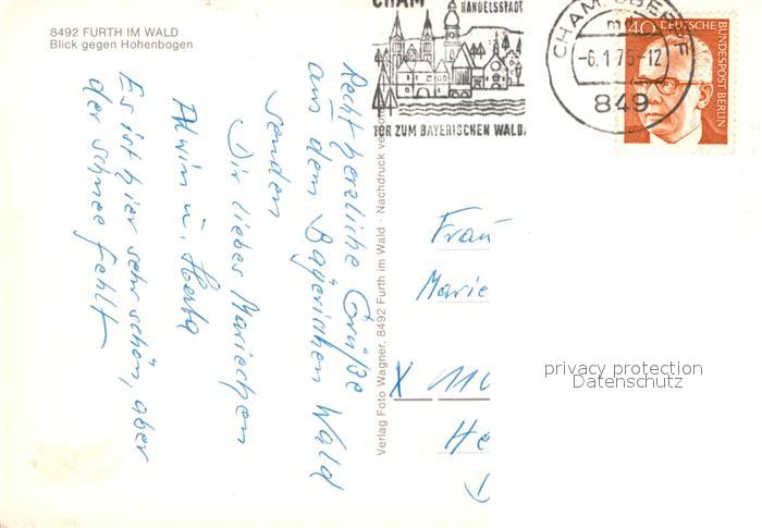 73019483 alte Postkarte Furth Wald Hohenbogen postalisch gelaufen Erhaltung siehe scans [NatalD47] KatCode: 11110009372126