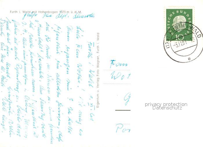 73608753 alte Postkarte Furth Wald Panorama mit Hohenbogen postalisch gelaufen Erhaltung siehe scans [WerneD78] KatCode: 11110009372126