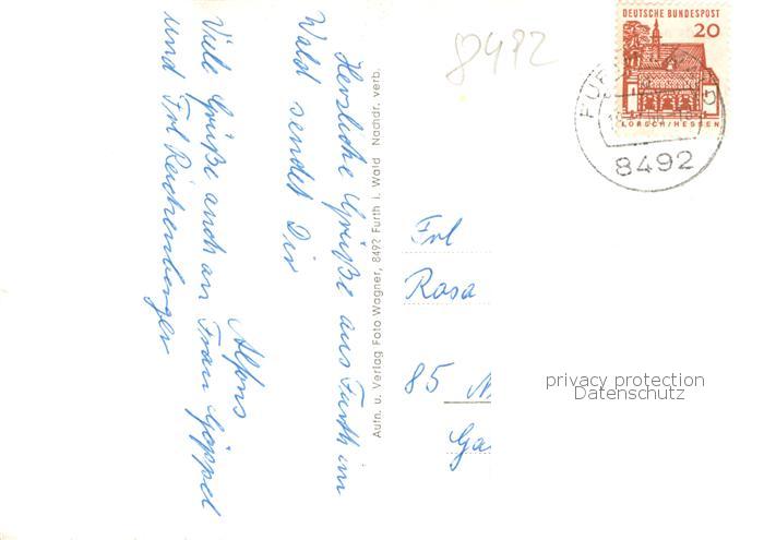 73759342 alte Postkarte Furth Wald Stadtturm Panorama mit Hohenbogen Stadtmotiv mit Chambs Stadtplatz St Nepomuk Der Drachenstich Rathaus postalisch gelaufen Erhaltung siehe scans [FriedD77] KatCode: 11110009372126