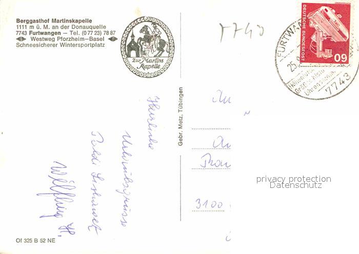 72872342 alte Postkarte Furtwangen Berggasthof Martinskapelle an der Donauquelle postalisch gelaufen Erhaltung siehe scans [FriedD77] KatCode: 11110008326017