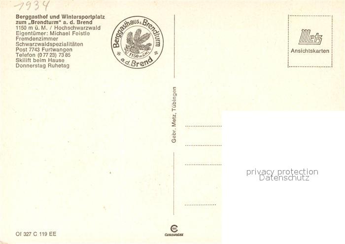 73209355 Furtwangen Berggasthof zum Brendturm auf dem Brend Schwarzwald Alpenkette Fliegeraufnahme postalisch nicht gelaufen Erhaltung siehe scans [FriedD77] KatCode: 11110008326017