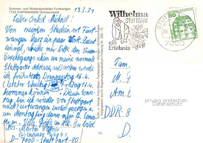 72648899 alte Postkarte Furtwangen Fliegeraufnahme postalisch gelaufen Erhaltung siehe scans [LiesaD40] KatCode: 11110008326017