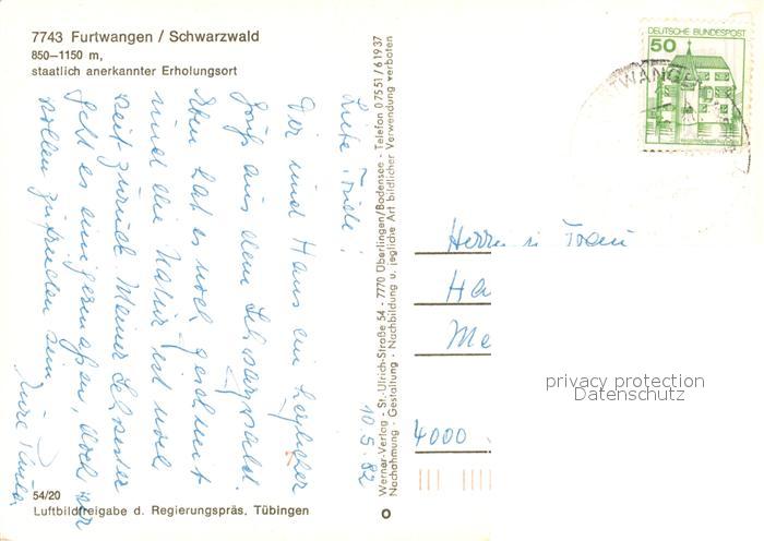 73047772 alte Postkarte Furtwangen Fliegeraufnahme postalisch gelaufen Erhaltung siehe scans [KathaD81] KatCode: 11110008326017