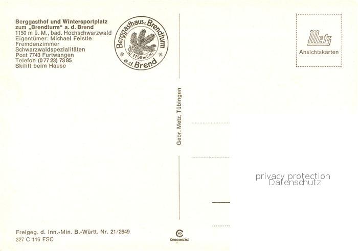73198244 Furtwangen Fliegeraufnahme Berggasthof zum Brendturm postalisch nicht gelaufen Erhaltung siehe scans [KathaD81] KatCode: 11110008326017