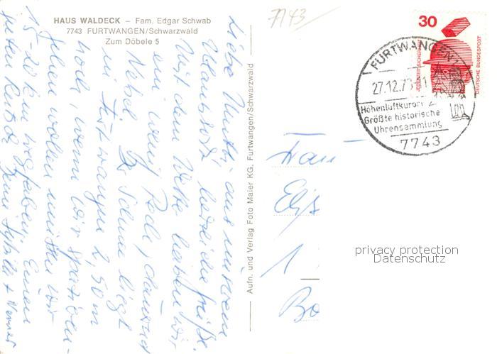 73863348 alte Postkarte Furtwangen Gaestehaus Pension Haus Waldecke Panorama Kurort postalisch gelaufen Erhaltung siehe scans [FriedD77] KatCode: 11110008326017