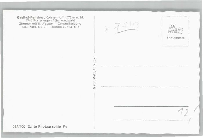 40736903 Furtwangen Gasthof Pension Kolmenhof KatCode 11110008326017