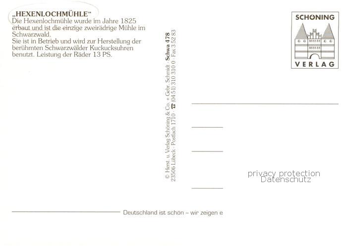 73789527 Furtwangen Hexenlochmuehle ist in Betrieb und wird zur Herstellung der beruehmten Schwarzwaelder Kuckucksuhren benutzt postalisch nicht gelaufen Erhaltung siehe scans [WerneD78] KatCode: 11110008326017