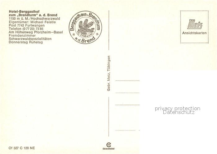 73110455 Furtwangen Hotel Berggasthof zum Brendturm postalisch nicht gelaufen Erhaltung siehe scans [NatalD47] KatCode: 11110008326017