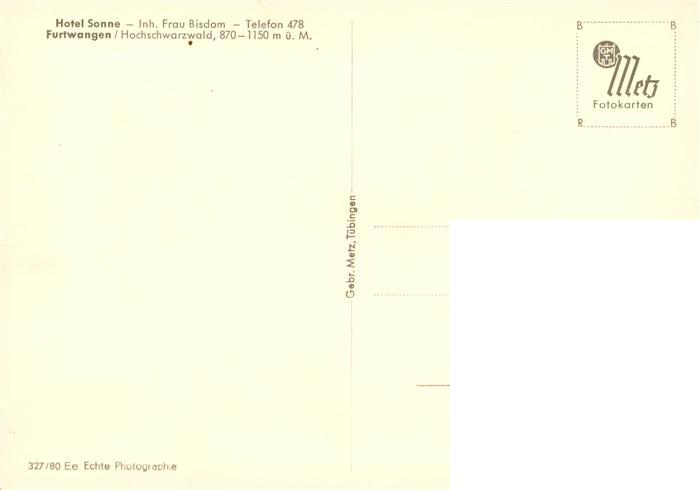 73898364 Furtwangen Hotel Sonne Gastraum postalisch nicht gelaufen Erhaltung siehe scans [WerneD78] KatCode: 11110008326017