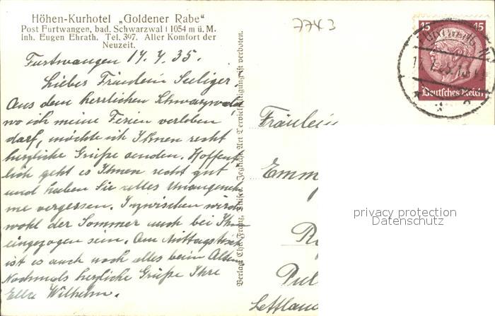 31728560 alte Postkarte Furtwangen Kurhotel Goldener Rabe postalisch gelaufen KatCode: 11110008326017