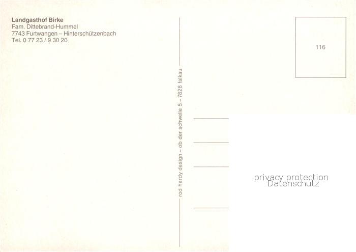73791413 Furtwangen Landgasthof Birke postalisch nicht gelaufen Erhaltung siehe scans [WerneD78] KatCode: 11110008326017