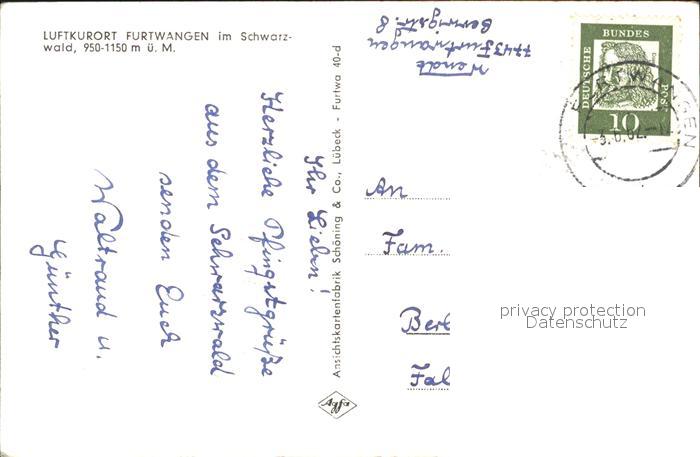 71929735 alte Postkarte Furtwangen Ortsansicht postalisch gelaufen Erhaltung siehe scans KatCode: 11110008326017