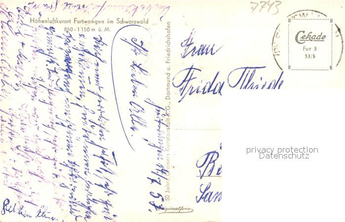 43348048 alte Postkarte Furtwangen Panorama Kirche postalisch gelaufen Erhaltung siehe scans [KathaD81] KatCode: 11110008326017