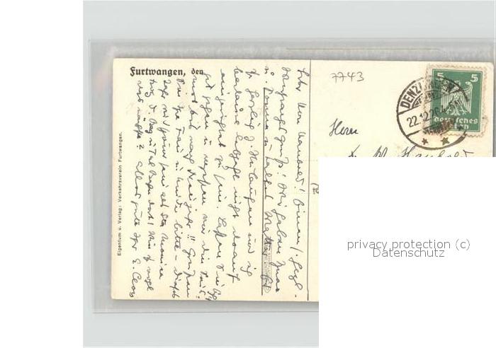 71497613 alte Postkarte Furtwangen Panorama Kuenstlerkarte postalisch gelaufen Erhaltung siehe scans KatCode: 11110008326017