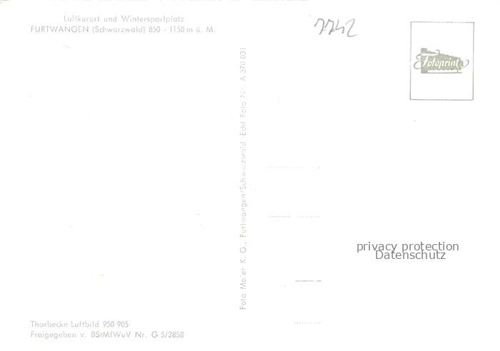 74060126 Furtwangen Schwarzwald BW Fliegeraufnahme postalisch nicht gelaufen Erhaltung siehe scans [WerneD78] KatCode: 11110008326017