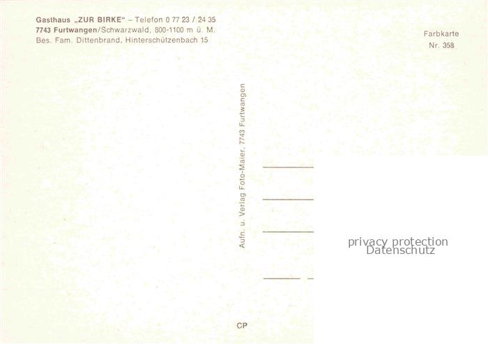 74040736 Furtwangen Schwarzwald BW Gasthaus zur Birke Winterlandschaft im Schwarzwald postalisch nicht gelaufen Erhaltung siehe scans [FriedD77] KatCode: 11110008326017