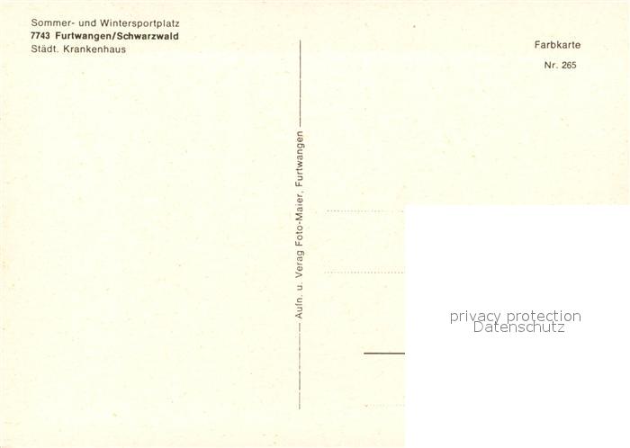 73324405 Furtwangen Staedtisches Krankenhaus postalisch nicht gelaufen Erhaltung siehe scans [FriedD77] KatCode: 11110008326017