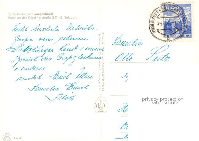 73361308 alte Postkarte Fusch Grossglocknerstrasse Cafe Restaurant Lampenhaeusl Terrasse postalisch gelaufen Erhaltung siehe scans [FriedD77] KatCode: 11390322050604