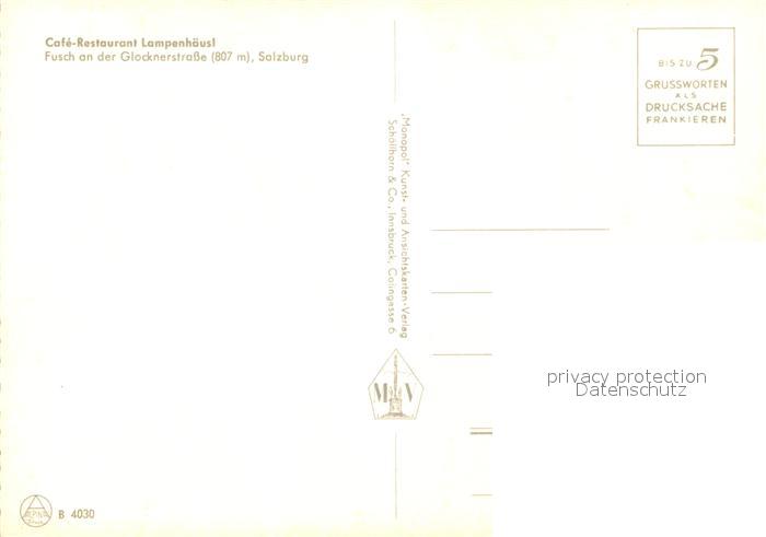73587033 Fusch Grossglocknerstrasse Cafe-Restaurant Lampenh?usl postalisch nicht gelaufen Erhaltung siehe scans [PaolaD17] KatCode: 11390322050604