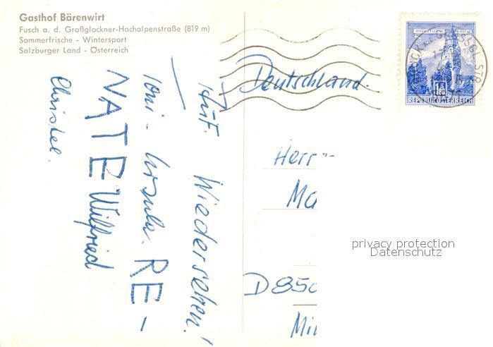 72990422 alte Postkarte Fusch Grossglocknerstrasse Gasthof Baerenwirt Grossglockner Hochalpenstrasse postalisch gelaufen Erhaltung siehe scans [FriedD77] KatCode: 11390322050604