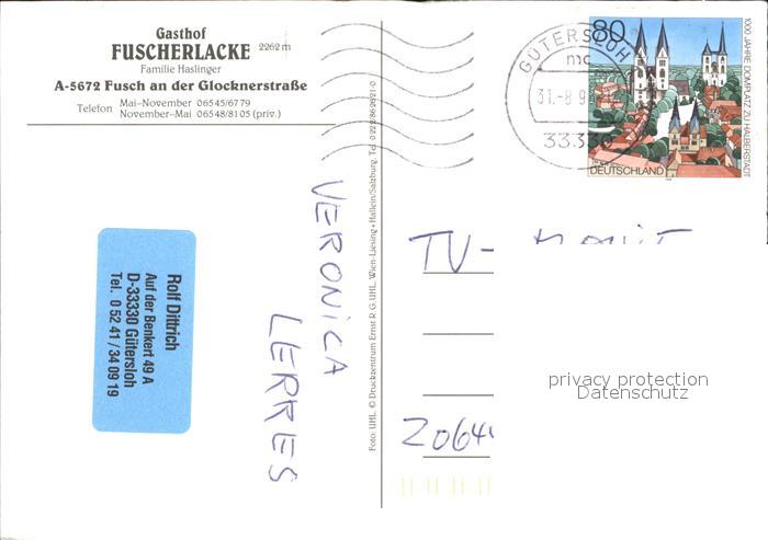 72071868 alte Postkarte Fusch Grossglocknerstrasse Gasthof Fuscherlacke postalisch gelaufen Erhaltung siehe scans KatCode: 11390322050604