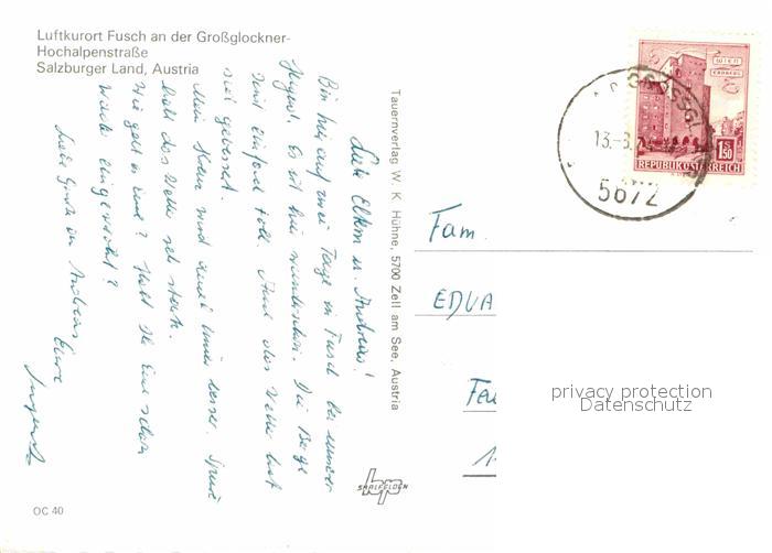 72900213 alte Postkarte Fusch Grossglocknerstrasse Hochalpenstrasse Freibad Salzburger-Land postalisch gelaufen Erhaltung siehe scans [LiesaD40] KatCode: 11390322050604
