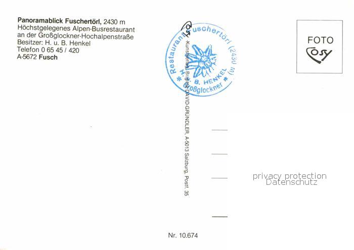72900237 Fusch Grossglocknerstrasse Panoramablick Fuschertoerl Glocknerrestaurant Fuscheroerl Franz-Rehl-Haus postalisch nicht gelaufen Erhaltung siehe scans [LiesaD40] KatCode: 11390322050604