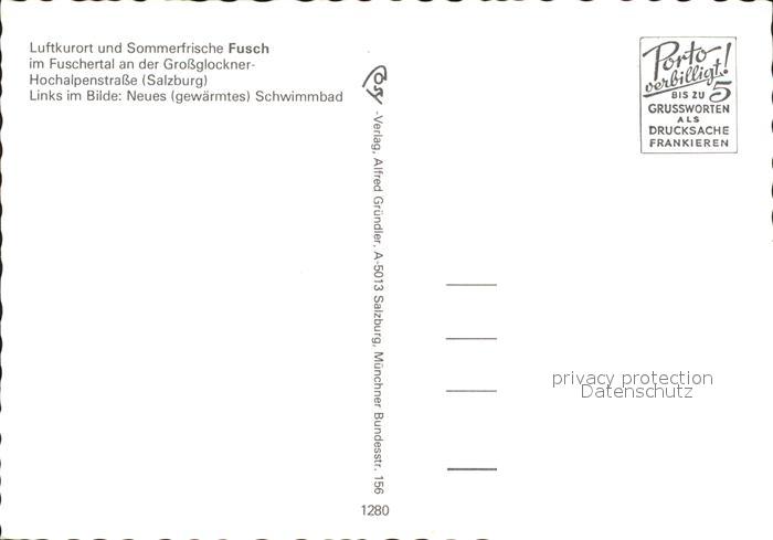 71981913 Fusch Grossglocknerstrasse Schwimmbad postalisch nicht gelaufen Erhaltung siehe scans KatCode: 11390322050604
