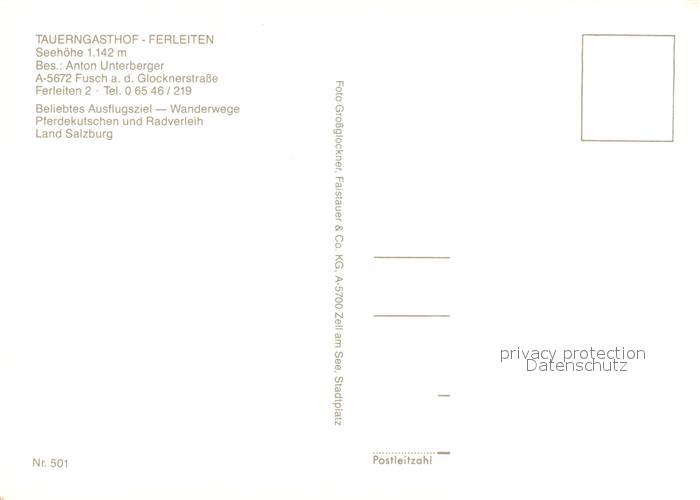 73233583 Fusch Grossglocknerstrasse Tauerngasthof Ferleiten Pferdewagen postalisch nicht gelaufen Erhaltung siehe scans [LiesaD40] KatCode: 11390322050604
