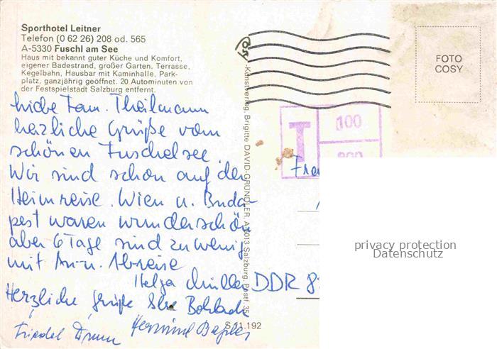 74037741 alte Postkarte Fuschl See Salzkammergut AT Sporthotel Leitner Badesteg Anleger postalisch gelaufen Erhaltung siehe scans [FriedD77] KatCode: 11390323050312