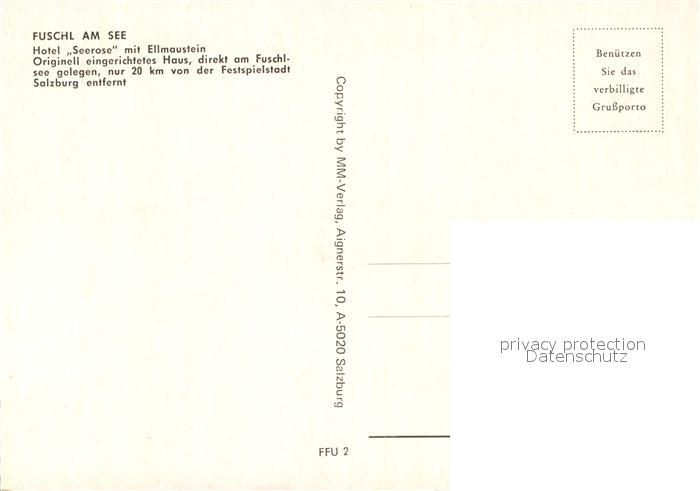 73167973 Fuschl See Salzkammergut Hotel Seerose mit Ellmaustein postalisch nicht gelaufen Erhaltung siehe scans [LiesaD40] KatCode: 11390323050312