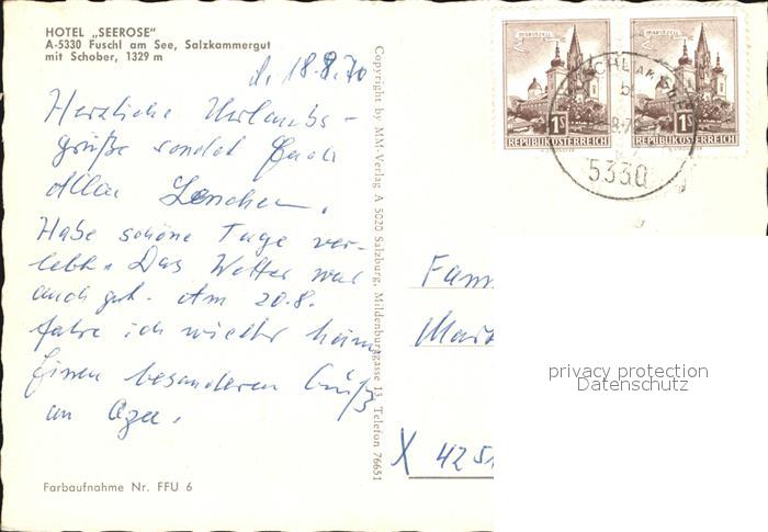 72439002 alte Postkarte Fuschl See Salzkammergut Hotel Seerose postalisch gelaufen Erhaltung siehe scans KatCode: 11390323050312
