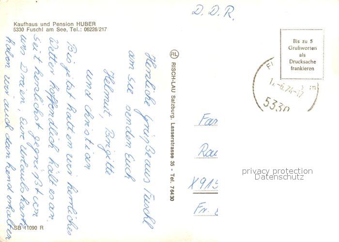 73515071 alte Postkarte Fuschl See Salzkammergut Kaufhaus und Pension Huber Zimmer Gaststube postalisch gelaufen Erhaltung siehe scans [WerneD78] KatCode: 11390323050312