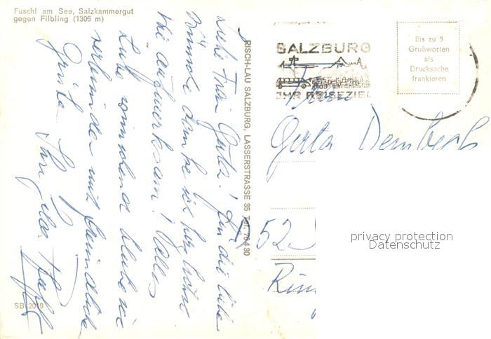 73590110 alte Postkarte Fuschl See Salzkammergut Panorama Blick gegen Filbling postalisch gelaufen Erhaltung siehe scans [FriedD77] KatCode: 11390323050312