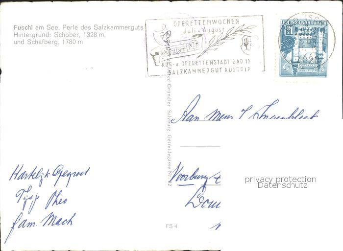 72254269 alte Postkarte Fuschl See Salzkammergut Panorama mit Schober und Schafberg postalisch gelaufen Erhaltung siehe scans KatCode: 11390323050312