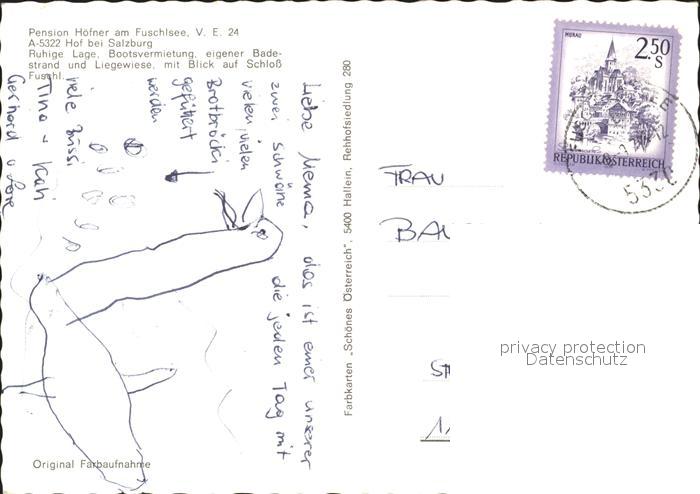 72375709 alte Postkarte Fuschl See Salzkammergut Pension Hoefner Badestelle Panorama postalisch gelaufen Erhaltung siehe scans KatCode: 11390323050312