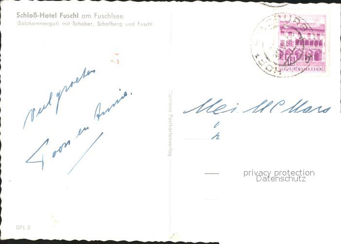 11923846 alte Postkarte Fuschl See Salzkammergut Schloss Hotel Schober Schafberg postalisch gelaufen Erhaltung siehe scans KatCode: 11390323050312
