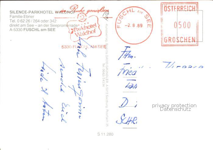 72479281 alte Postkarte Fuschl See Salzkammergut Silence Parkhotel Waldhof postalisch gelaufen Erhaltung siehe scans KatCode: 11390323050312