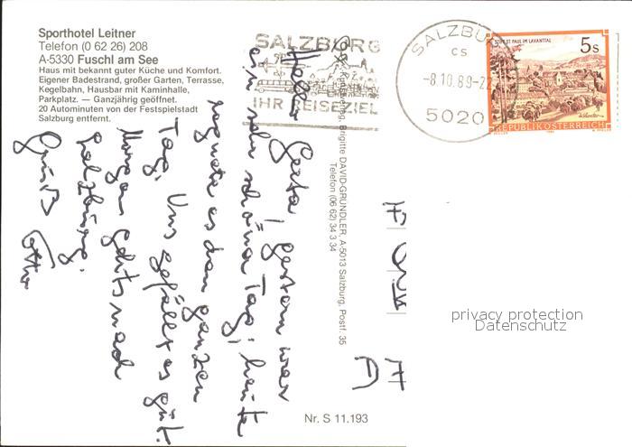42923702 alte Postkarte Fuschl See Salzkammergut Sporthotel Leitner Rezeption Bar postalisch gelaufen Erhaltung siehe scans [WerneD48] KatCode: 11390323050312