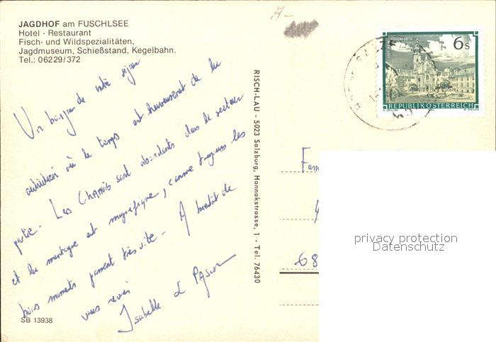 71812686 alte Postkarte Fuschlsee Jagdhof am Fuschlsee Hotel Restaurant Details postalisch gelaufen Erhaltung siehe scans KatCode: 11390