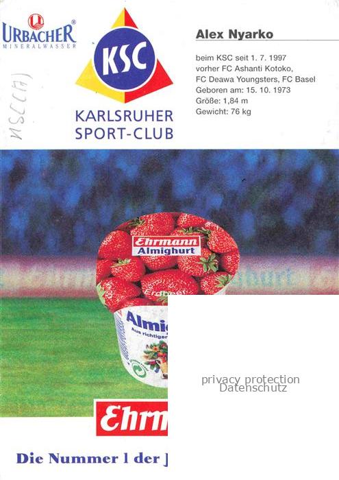 74051885 Fussball Soccer Football– Alex Nyarko KSC Autogramm postalisch nicht gelaufen Erhaltung siehe scans [IrynaD87] KatCode: 22520000002900