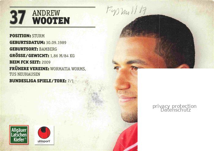 74052088 Fussball Soccer Football– Andrew Wooten Roten Teufel von Betzenberg FCK Autogramm postalisch nicht gelaufen Erhaltung siehe scans [IrynaD87] KatCode: 22520000002900